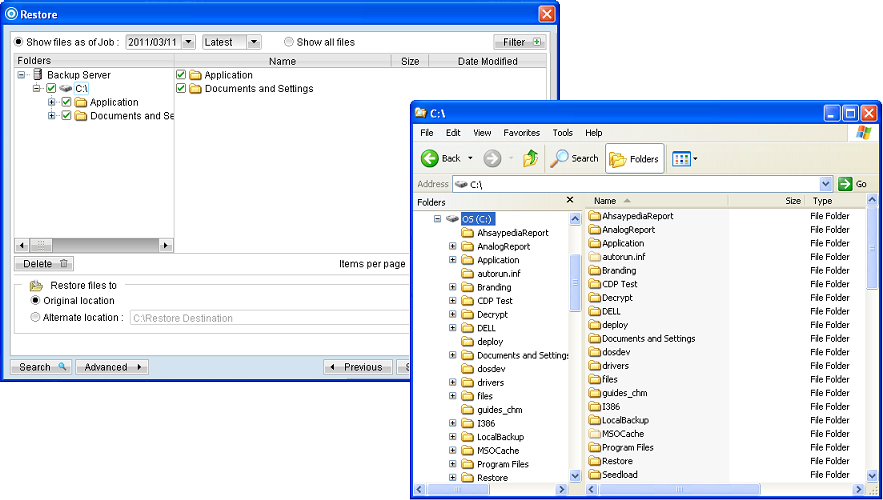 Specifically, the restore process will restore the Application, Documents and Settings folders and the data within, and then delete all other data on C:\ to mirror the restore source and destination.